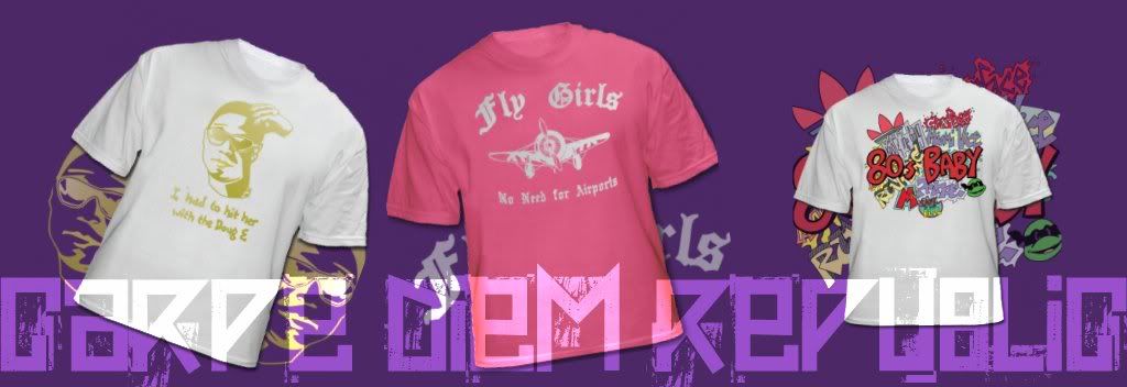 While I was on Facebook one day perusing other people's profiles (AKA being nosey) I saw a wall post from a Ryan Bryson talking about Carpe Diem Republic. I actually saw it on several different walls. I meant to click on it and see what it was, but I forgot to do it *shoulder shrug*. A couple of days later on twitter I asked about what HOT local lines there were and Carpe Diem Republic was one of the lines mentioned by my friend DJ Bern. So I went back and found the link and I'm glad I did! Carpe Diem Republic is definitely a line that contains the freshness, and spunk that BeShayBE likes in her clothing! Check them out on http://www.carpediemrepublic.com/ and add Mr. Bryson on Facebook!